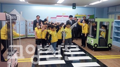 이번 사업으로 능곡초 1층에 해피스쿨 안전체험관이 설치됐고 체험관 내부에는 모형 횡단보도와 신호등, 교통안전 게시물, 가변형 패널, 합체와 분리가 되는 트랜스폼 자동차 모형 2대가 설치됐다.
