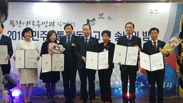고부미 고양시의회 의원이 민주평화통일자문회의 의장 표창을 받았다. 이날 박윤숙 상임위원과 여정팔 일산동구지회장, 현재봉 부회장, 김미영 교육홍보분과 부위원장 등도 민주평화통일자문회의 의장 표창장을 수상했다.