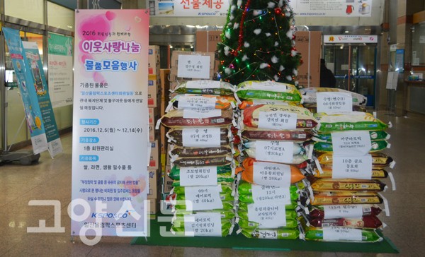 이날 전달된 물품은 쌀 1060㎏, 라면 27박스, 기타 생활용품 등으로 일산올림픽스포츠센터 회원과 직원들이 12월 5일부터 열흘간 물품모음행사를 통해 기부 받은 것들이다.