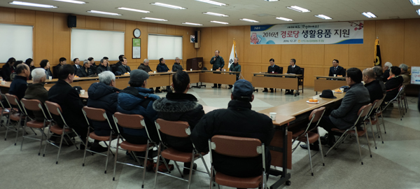 [고양신문] 신도농협은 지난 27일 삼송동 본점 3층 강당에서 지역경로당에 생활용품을 전달하고 간담회를 가졌다. 이날 전달식에는 지역경로당 30개 노인회장과 우일덕 대한노인회 덕양구지회장, 김형만 신도분회장, 김영수 화전분회장, 신도농협 임직원 등 50여 명이 참석했다.
