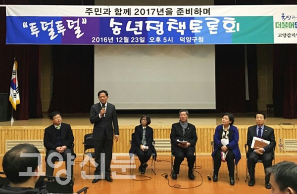 술 한 잔, 의례적인 인사가 오가는 정당 송년회가 아니었다. 지난달 23일 덕양구청 대회의실에서 열린 더불어민주당 고양갑 지역위원회 송년행사 ‘투덜투덜 정책토론회’는 확실히 달랐다. 진지한 지역의 현안들을 나누고, 각자의 불만을 마이크를 잡고 털어놓았다.