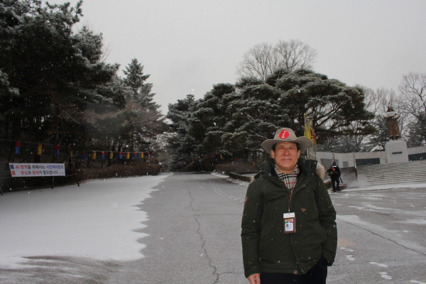 이세주 고양시 문화관광해설사를 찾은 날 마침 함박눈이 펑펑 쏟아졌다. 흰눈이 쌓인 행주산성 사적지를 배경으로 서 있는 이세주 해설사는 71세라는 나이가 믿기지 않을 정도로 에너지가 넘쳤다. 그는 42명의 고양시 문화관광해설사 가운데 단 2명뿐인 남성 해설사 중 한 명이다. 행주산성과 서오릉, 서삼릉, 밤가시초가와 같은 사적지에서 2년마다 순환근무 하며 열정적으로 활동하고 있다.