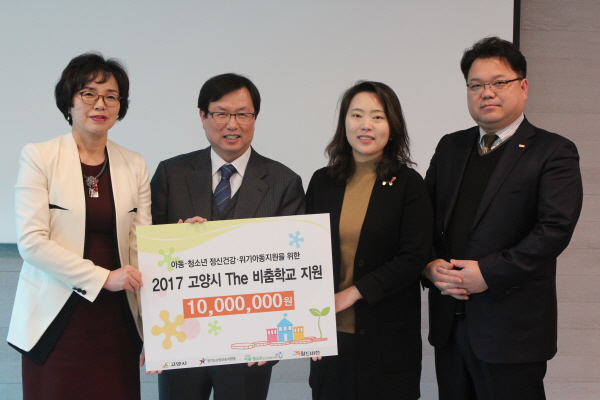 [고양신문] 아동·청소년의 마음건강을 위한 협력 네트워크 사업인 ‘The 비춤’ 학교 후원금 전달식이 지난 8일 고양교육지원청에서 진행됐다. 이날 전달식에는 고양교육지원청, 사회복지법인 월드비전, 고양시아동청소년정신건강증진센터(이하 고아정)가 자리를 함께 했으며, 후원금 전달 행사와 함께 지난해 사업 보고와 2017년 추진 계획들이 논의됐다.