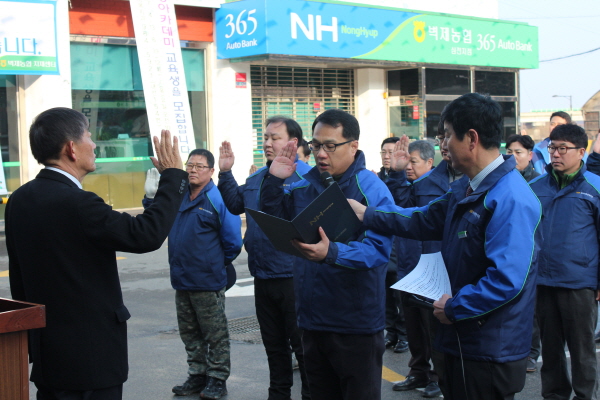 한편 이날 행사는 벽제농협의 ‘2017 영농자재 종합서비스운동 발대식’과 함께 열렸다. 발대식에서는 벽제농협 심천지점 이형우 대리가 직원을 대표해 “이용자를 위한 완벽한 배달체계와 직원들의 헌신을 통해 대농민 불만제로 서비스를 구현하겠다”는 내용의 결의문을 선서했다.