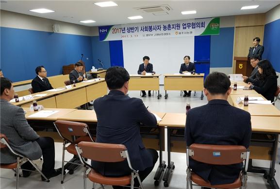 [고양신문] 법무부 고양준법지원센터(고양보호관찰소, 소장 한상익)는 지난 13일 농협중앙회 파주시지부 회의실에서 농협중앙회 파주시지부장, 농정지원단장 및 지역 조합장 등 집행협의체 위원 12명이 참석한 가운데 사회봉사 농촌지원 집행협의체 간담회를 개최했다. 이날 간담회는 사회봉사 농촌지원에 대한 2016년도 집행성과를 분석하고, 2017년도 효율적인 집행 방안에 대해 검토하는 자리였다.