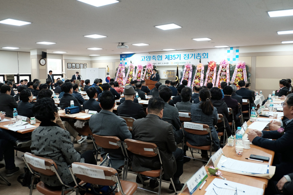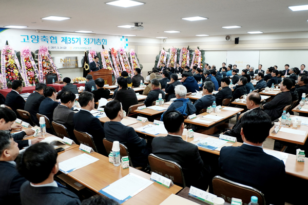 [고양신문] 고양축협 정기총회가 24일 고양축협 본점 3층 대강당에서 고양축협 조합원들과 대의원, 타 시도 농협 조합장, 지역 시의원, 임원들이 참석한 가운데 열렸다. 이번 정기총회에서는 원로조합원에 대한 감사패 전달과 사업부문별 우수조합원, 우수고객, 전이용 우수조합원, 유공직원 등에 대한 감사패 전달이 있었고, 우수축산계, 우수부녀회, 우수실버봉사단원과 우수지점 표창식도 함께 가졌다.