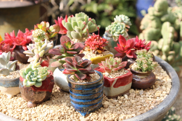 한 매장의 사장은 “꼭 마당이 있어야 정원을 꾸미는 건 아니”라면서 각자 취향에 맞는 ‘미니 정원’을 꾸며 볼 것을 권했다. 베란다, 또는 거실 한 구석에 커다란 그릇이나 옹기 뚜껑을 이용해 흙을 채운 후 자신만의 취향으로 꾸민 작은 실내 꽃밭을 가꿔보란 얘기다. 이왕이면 가족들이 다같이 나들이를 해 꽃의 종류와 색깔을 함께 고르는 재미를 느껴보는 것도 좋겠다. 작은 수반을 이용해 방 안이나 진열대 위에 개인용 정원을 꾸며 볼 수도 있다. 웬만한 규모의 화훼 매장에는 화분이나 장식용 소품을 전문적으로 취급하는 가게가 한둘은 있게 마련이니 꼭 한번 들러보길 권한다. 꽃을 고른 후 화분을 고를 수도 있지만, 맘에 드는 화분을 고른 후 크기와 색깔에 어울리는 꽃을 골라 봐도 좋을 듯.