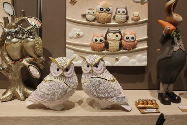 부엉이나 고양이, 강아지 등 동물 모양을 디자인한 인형과 소품들도 제각각 개성을 뽐낸다. 디자인보다 아이디어가 돋보이는 상품들도 있다. 철제로 만든 3단 수납선반은 평면으로 접히기 때문에 사용하지 않을 땐 얌전히 보관해두기 좋을 듯. 티스푼을 꽂을 수 있는 귀여운 커플 머그컵도 눈에 띈다.