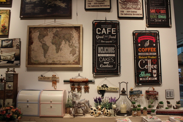 천천히 소품들을 둘러보니, 기존에 보지 못한 파격적인 디자인의 상품들이 가득하다. 벽에 걸린 장식 액자 중에는 유럽의 도시 골목에서 마주칠 듯한 고픙스런 테라스, 또는 클래식 자동차를 입체적으로 재현해 놓은 것도 있고, 세련된 카페에 어울릴 듯한 모던한 감각의 프레임 액자도 있다.