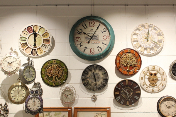 주인장 배연서 대표의 말대로 장식성이 돋보이는 예쁜 시계들이 지천이다. 프로펠러 비행기 모양의 시계는 뚜껑 안에 수납 공간을 숨겨뒀다. 입구에서 본 꽃무늬 시계도 초침이 없는 무소음 시계라 머리맡에 걸어놓아도 좋을 듯.