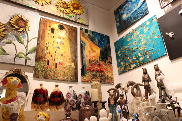 고흐의 ‘별이 빛나는 밤’, 클림트의 ‘키스’ 등 인기 있는 명화를 카피한 그림 액자는 하이그로시 기법으로 마감됐다. 프린팅 된 그림 위에 투명한 에폭시 수지를 발라 아름다움과 견고함을 더했다.