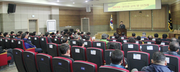 [고양신문] 송포농협(조합장 이재영)은 지난 4일 송포농협 가좌지점 대강당에서 ‘2017년 대의원 교육 및 상견례’를 실시했다. 이날 교육에는 올해 당선된 대의원 40여 명과 임원(이사, 감사)이 참석해 농협대학 부총장인 최경식 교수의 '농협의 이념과 대의원의 역할'에 대한 강의를 들었다.