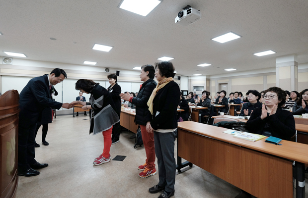 [고양신문] 제2기 고양축산농협 여성대학 개강식이 지난 6일 고양축협 본점 3층에서 유완식 고양축협 조합장을 비롯해 이사들과 여성대학 입학생들이 참석한 가운데 열렸다. 이날 개강식에서는 입학생 최성수 학생회장과 부회장, 각반 반장에게 임명장을 수여하고, 김위상 농협대학 총장이 참석해 축사를 했다.