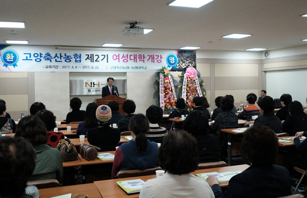 유완식 고양축협 조합장은 개강식에서 “고양축협은 여성 사회교육을 통해 여성의 잠재력을 향상시키고 건강한 지역사회를 이끌어 나갈 지역 여성지도자교육을 활발하게 전개하고 지원하겠다”고 말했다. 고양축협 여성 대학은 4월 6일 첫 강의인 EM(유용한 미생물) 교육을 시작으로 총 11강의 전문적인 프로그램으로 교육을 진행할 예정이다.