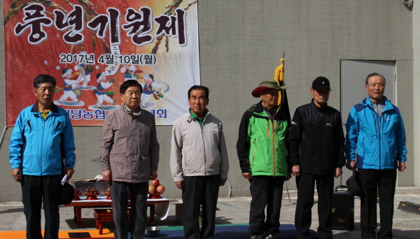 [고양신문] 원당농협(조합장 강효희) 원로청년회(회장 장석영)는 지난 10일 주교동 본점 마당에서 ‘2017 원로청년회 풍년기원제’를 올렸다. 참가자들은 고양유림 김영호, 이충구씨의 진행으로 강신례, 참신례, 조헌례, 독축, 아헌례, 종헌례, 헌작례 순으로 경건하게 풍년기원제를 올렸다.