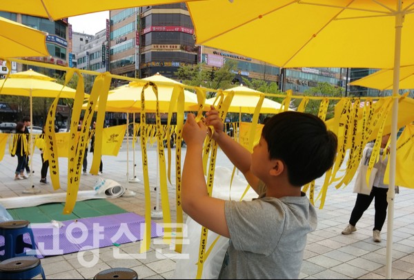 2014년 4월 16일 진도 앞바다에 가라앉았던 세월호가 1073일 만에 수면 위로 올라왔다. 세월호 3주기를 맞아 지난 16일 일산문화공원에서는 고양지역 시민단체들이 모여 오후 2시부터 6시까지 세월호 추모문화제를 진행했다.