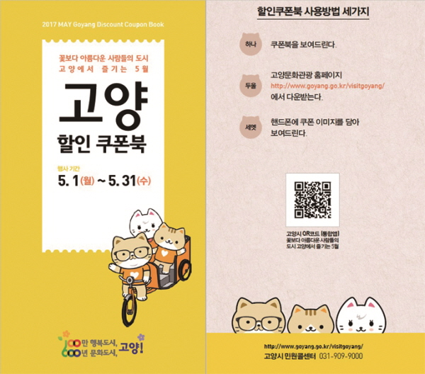 특히 고양국제꽃박람회와 같은 고양시 대표축제와 다채로운 문화 행사들이 지역 소비 활성화로 이어지도록 하기 위해 음식점, 의류, 쇼핑업계 등 관광관련 기관 및 시설, 주요 상가 34개 업체가 참여한 할인 쿠폰북을 제작했다.