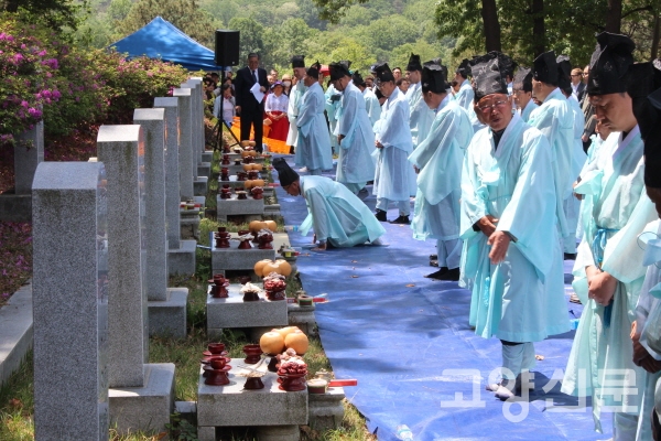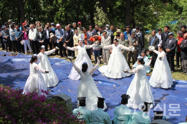 이어 무형문화재 기연옥 선생과 문하생들이 전통 무용인 추원무를 선보인 후, 유교적 예법의 원형을 고스란히 유지한 제례의식이 엄숙히 진행됐다.
