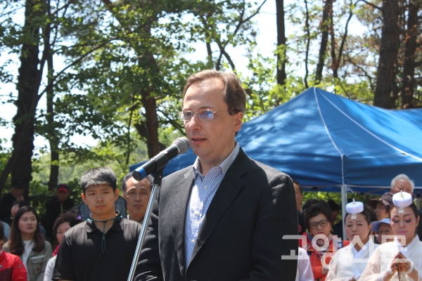 [고양신문] 한국과 러시아 양국 사이의 문화적 이해의 폭을 넓히는 뜻 깊은 행사가 지난 14일 고양시 성사동 원당역 인근의 행주기씨 도선산에서 열렸다. 행주기씨 대종중이 주최한 ‘2017년도 행주기씨 종친의 날’ 행사에 주한 러시아 대사관의 막심 볼코프 공사 겸 부대사가 참석해 우리나라의 전통 제례 문화를 체험하는 시간을 가진 것.
