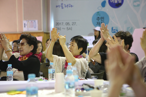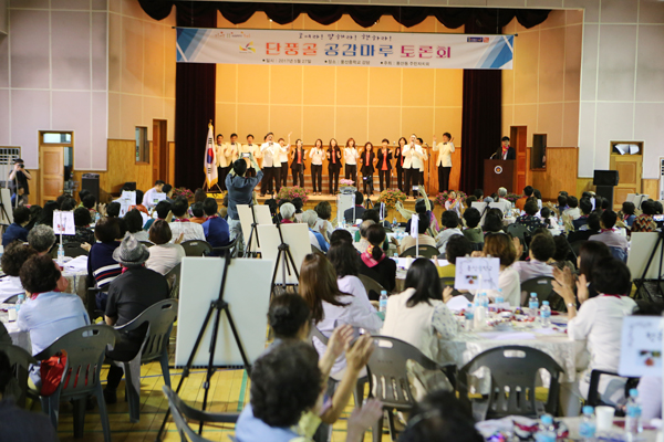 주민토론회로 이어진 공감마루에서는 마음 터놓기라는 주제로 풍산동 비전세우기와 테이블 토론이 열띠게 펼쳐졌다. 이후 폐회 마음모으기에서는 풍산동 마을 비전선포와 향후 추진계획논의가 이어졌다.