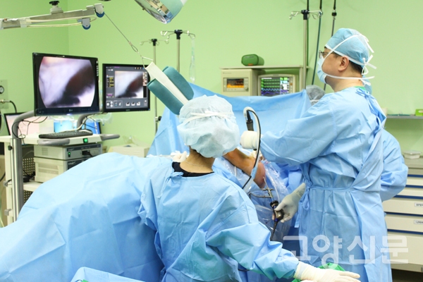 [고양신문] 멋지게 아빠의 실력을 보여주고 싶었다. 중학생 아들과 축구 시합을 하며 힘차게 달렸다. 갑자기 어깨근육 쪽이 두둑하며 저리고 아팠다. “안 쓰고 말지 뭐” 하며 방치하고 지낸 지가 2년이 넘었다. 요즘은 가만히 있어도 어깨 앞쪽이 욱신거리며 아프다. 어깨 힘줄인 회전근개가 파열됐나 생각했다.