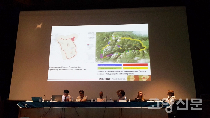 마달레나섬 해군기지에서 열린 이번 ‘국제군사경관학회’는 국제성곽군사위원회(ICOFORT)가 개최하는 학술회의로 성곽유적의 세계유산 등재 여부를 심사·검토하는 공신력 있는 국제학술회의다. ‘군사유산을 위한 미래’라는 주제로 영국·이탈리아·스페인·미국 등 세계유산위원회 소속 유산 및 성곽 전문가 등이 참여했으며 고양시 소재 대표 문화유산인 사적 제162호 북한산성은 ‘군사유산과 예술’이라는 특별 세션에 아시아 국가 중 유일하게 초청됐다.