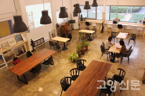 [고양신문] 언제부터인가 ‘사람들’을 찾아 일상 안으로 성큼 걸어 들어오는 ‘문화예술’의 발걸음이 빨라졌다. 동네 서점에서 강연과 콘서트가 열리고, 크고 작은 동아리에서 반짝이는 문화 이벤트를 기획하기도 한다. 문제는 바빠진 발걸음을 수용할만한 공간적 인프라가 아직은 부족하다는 점. 고양시에 또 하나의 멋진 문화 공간이 생겼다는 반가운 소식을 듣고 설문동으로 향했다. 농경지와 창고가 교차되는 마을길로 차를 몰다 보니 단정한 전원주택단지가 나타난다. 전원주택단지 맞은편에 자리한 모던한 스타일의 검은색 건물, 카페와 아트갤러리와 공연장이 집약된 ‘평아트카페’다.