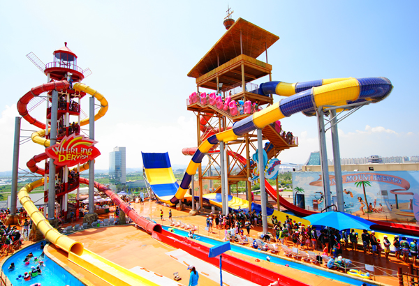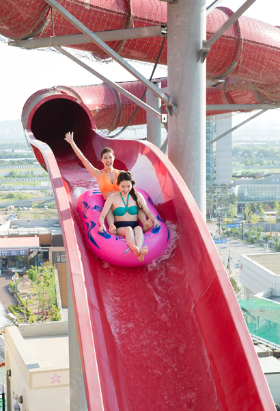 가장 높은 곳에 위치한 슬라이드 ‘윌링더비쉬’와 ‘스카이부메랑고’에서는 주변의 한강과 일산 호수공원이 한 눈에 담겨 경관마저 압권이다. 특히 ‘윌링더비쉬’는 지상으로부터 50m 높이까지 솟아있는 전망대에서 맨몸으로 쏟아지듯 낙하하는 아찔함이 있다. ‘스카이부메랑고’는 하늘로 솟구치며 역회전 하는 동안 순간적인 무중력을 체험할 수 있어 스릴 만점이다.