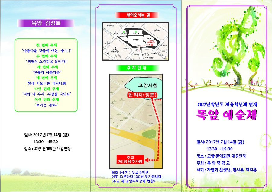 [고양신문] 목암중학교(교장 조규상)는 오는 14일 오후 1시30분 고양문예회관에서 1학년 자유학년제와 연계한 행복음악회를 개최한다.