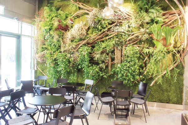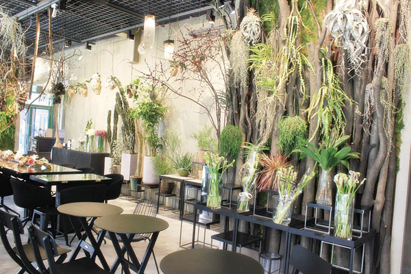 생김새도 다르고 특이한 식물들과 꽃을 구경하는 것도 카페 디 아틀리에 나탈리가 주는 매력이다. 한쪽 벽면은 모두 초록 식물. 마치 숲속의 한 장면을 바로 앞에 두고 있는 듯하다.