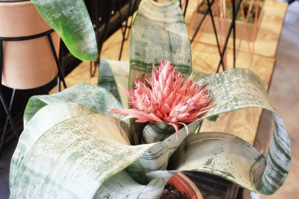 내부에 들어서자 높은 층고 덕분에 단층임에도 시야가 확 트인다. 자연미 가득한 다양한 식물들과 채색하지 않은 벽이 편안함을 준다. 마음도 편하고 눈도 편안한 공간. 벽에는 높낮이가 다른 받침대 위에 올려진 크고 작은 화분들이 놓여 있다. 천장에는 작은 화분들이 걸려있어 사방으로 식물을 감상할 수 있다.