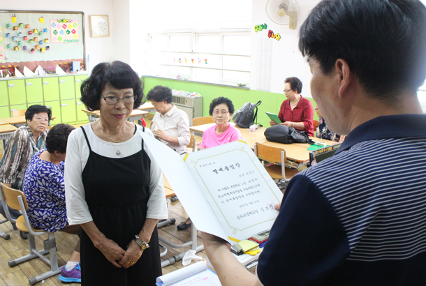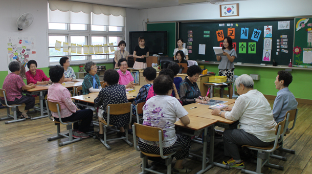 [고양신문] 2016년에 이어 원당종합사회복지관(관장 전병학)과 성라초등학교(교장 김호준 · 덕양구 성사동)가 학교방문수업 ‘올드스쿨-노년의 꿈을 배우다’를 7월 17일(월) 성라초등학교 3개 반에서 진행했다. 이번 학교체험에는 총 40여 명의 원당종합사회복지관 한글교실 어르신들이 참여해 학교수업에 대한 갈망을 해소하는 데 좋은 기회가 됐다. 성라초등학교에서는 이번 체험을 위해 총 3과목(수학, 미술, 음악)을 개설해 현직 교사들이 직접 재능기부 형태로 진행했으며 참여한 모든 어르신들에게 명예 졸업장도 수여했다.