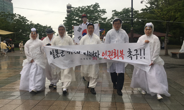 김우규 고양시향토민속예술연합회장은 “일본의 역사 왜곡을 규탄하기 위한 자리에 함께 해주신 모든 분들께 감사드린다. 비가 오는 가운데서도 위안부 피해자 할머니들의 인권회복을 위해 이렇게 많은 시민이 참석한 걸 보니 일본이 사죄할 날이 멀지 않은 것 같다. 위안부 할머니들을 위한 꺼지지 않는 희망의 불꽃에 큰 관심을 가져주길 바란다”고 말했다.