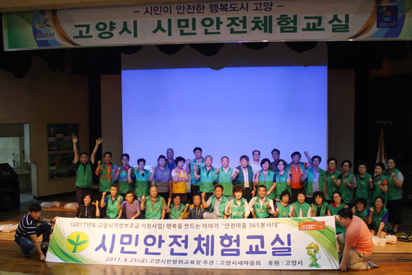 [고양신문] 고양시새마을회(회장 김봉진)는 지난 25일 행신동 고양시민방위교육장 시민안전체험관에서 각종 안전사고 발생에 대비해 '사고 예방 안전마을 365봉사대(시민안전체험) 교육'을 실시했다. 교육에는 5고양시새마을회원 50여 명이 참여해 심폐소생술 실습과 소화기 사용법, 화재시 대피훈련, 지진체험, 구조대피(완강기) 훈련 등을 체험교육 위주로 진행했다.