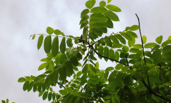 호두나무는 월파정 들입에서 아랫말산 방향으로 가다 보면 자작나무 무리가 자라고 있는데, 그 풀밭 안쪽에 외롭게 비실비실 자라고 있습니다. 호수공원을 개발하기 전에는 이곳이 습지나 논이었으니 배수가 어렵고 공기도 잘 통하지 않는 흙일 것입니다. 호두나무는 배수가 좋은 곳에서 잘 자라는 습성이 있는 나무이니 자라기 힘들겠지요. 하여튼 올해에도 호두알 여러 개 열렸습니다. 벌써 풀밭에 떨어진 호두알도 눈에 띄는 군요.