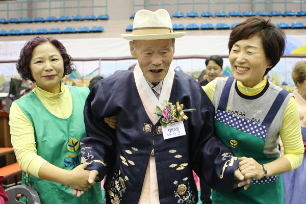 초대가수와 품바공연으로 어르신들이 흥겨운 분위기에 어깨를 들썩거리며 연신 웃음이 끊이질 않았다. 한편 어르신들에게는 과일과 떡 등의 식사대접과 백세시대 만수무강 선물전달도 있었다.