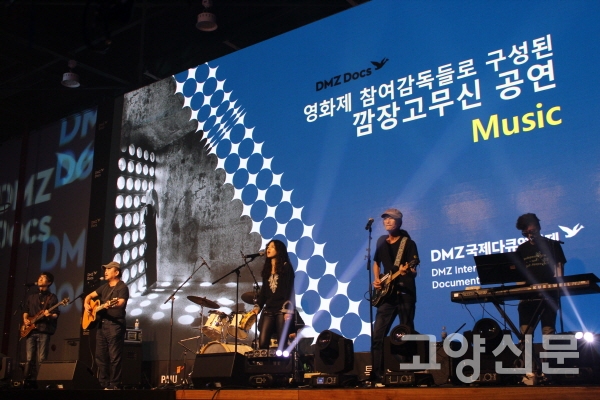 개막식 오프닝은 민통선 안 최북단 마을 대성동초등학교 학생들이 제작한 스톱모션 애니메이션이 장식했다. 이어 독립영화 감독과 배우들로 구성된 밴드 ‘깜장고무신’의 열정적인 축하공연이 이어졌다. 독립영화계의 대부이자 밴드 리더인 김동원 감독은 평화를 촉구하는 재치있는 내용의 노래와 랩을 숨가쁘게 소화해 객석의 커다란 박수를 받았다.