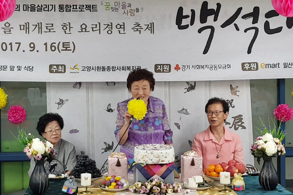 [고양신문] 흰돌종합사회복지관(관장 심재경)은 경기도사회복지공동모금회 지원사업 행복한 동네살이를 위한 주민들의 마을살리기 통합프로젝트 ‘꿈짓는 마을과 사람들’의 세부사업으로 지난 9월 16일(토) 오후 2시 마을 어르신 생신상 마련을 위한 요리경연축제 ‘백석대첩’을 열었다<사진>.