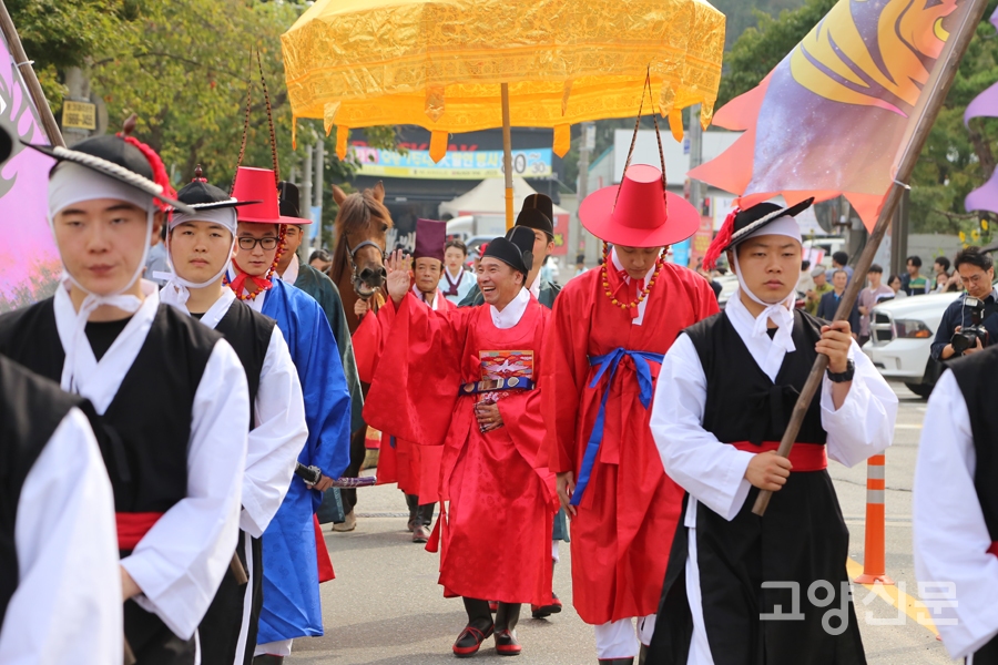 [고양신문] 벽제관 터가 남아있는 고양시 고양동에서 영조대왕 행차가 재연됐다. 지난 23일 고양동 마을축제인 ‘제9회 고양동 높빛축제’에서 영조대왕이 벽제관으로 행차하는 모습을 시민들이 함께 재연했다.