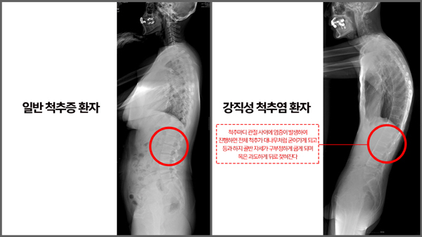 [고양신문] 최근 허리통증을 호소하는 사람들이 늘어나면서 일반 디스크로 오인하는 경우가 많아 주의가 요구되고 있다. 조기 치료시기를 놓치면 자칫 안구에 영향을 미쳐 시력장애까지 일으키는 ‘강직성 척추염’은 원인 불명의 만성 염증성 관절염이 전신으로 번지는 척추관절병증의 대표적 질환이다. 발병하면 만성적 염증성 만성통증, 장애, 변형, 골절이 일어나기 쉽고 관절외 증상으로 전방 포도막염이 동반되는 희귀난치성 질환이다.