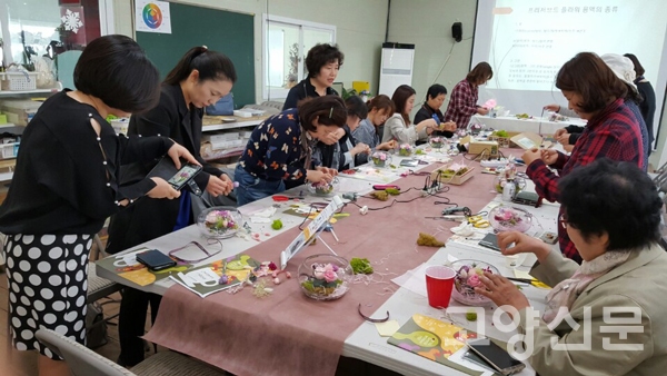 이날 평생학습여권을 가지고 참여한 시민 15명은 스칸디아모스, 장미, 강아지풀 등의 재료로 유리용기를 이용한 프리저브드 플라워 꽃꽂이를 배웠다. 이번 행사는 고양시 덕양행신종합사회복지관, 고양시 평생학습센터 주최・주관으로 열렸다.