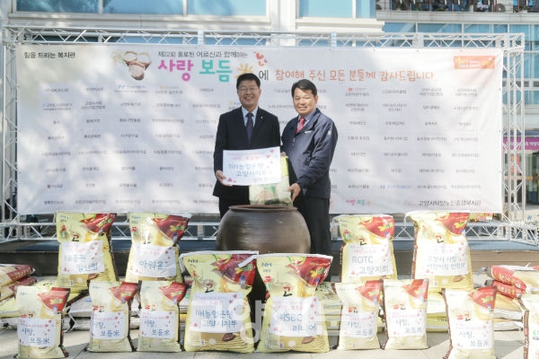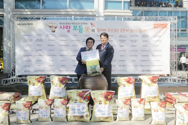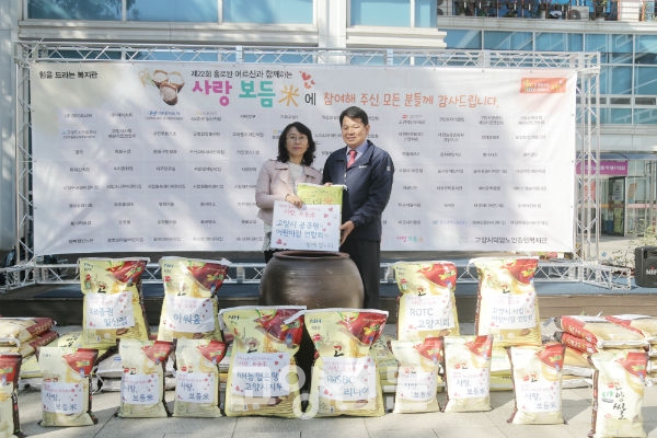 지난 13일 고양시덕양노인종합복지관(관장 이호경) 야외 광장에서 농협은행 고양시지부(지부장 손호진), 대한민국ROTC 고양지회, 아워홈, KB증권 일산지점(지점장 정명환), 고양시 관내 어린이집 등 개인·단체후원자들이 참여한 가운데 ‘사랑보듬米’ 행사가 진행됐다.