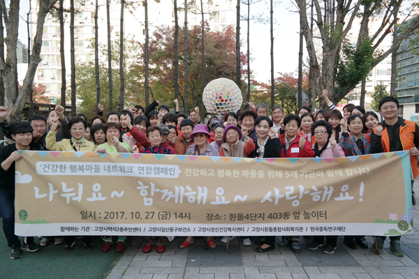 한편 행복마을 네트워크 기관에서는 일산동구에 거주하는 60세 이상 어르신들을 대상으로 신체·정신적 건강증진을 위해 각 기관의 자원과 전문성을 활용해 노인우울증과 자살예방 교육, 인식개선 캠페인, 우울예방 집단프로그램, 신체기능 향상 프로그램, 인지저하 프로그램 등 우울, 치매, 자살, 신체건강, 알코올 예방과 치료와 관리에 대한 통합서비스를 제공한다.