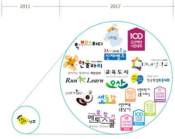 내용적인 면에서 ‘마을교육공동체’를 지향하고 있다면, 형식적인 면에서는 사업추진의 중요 주체가 더 늘었다는 것이 특징이다.
