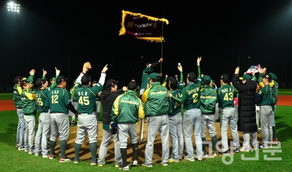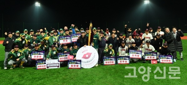 [고양신문] 연예인 야구단 폴라베어스가 새롭게 개장한 고양 장항야구장에서 열린 제10회 고양-한스타 연예인 야구대회에서 우승을 차지했다. 노라조 조빈 감독이 이끄는 폴라베어스는 지난 13일 고양 장항야구장에서 열린 결승전서 배우 오만석 단장이 이끄는 인터미션을 12-6으로 꺾고 대회 참가 4년 만에 우승기를 휘날렸다.
