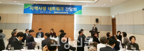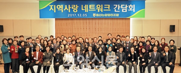 일산농협(조합장 김진의)이 지난 5일 킨텍스에서 지역사랑 네트워크 협약체 간담회를 열었다. ‘나누는 기쁨, 행복한 동행’을 지향해온 일산농협과 뜻을 함께 해온 기관·단체의 대표자들이 한 해를 마감하며 한자리에 모여 서로 교류하며 연대의 시간을 가진 것.