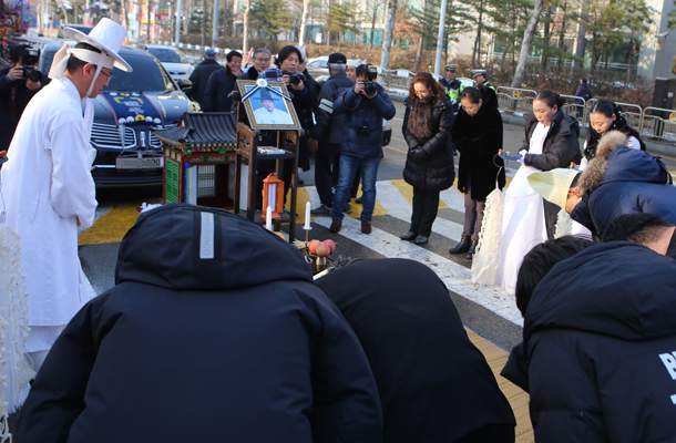 오전 9시부터 시작된 영결식은 경기무형문화재 27-4호 고양상여회다지소리의 전통상례로 고양문화원을 출발했다. 최장규 들소리보존회장의 선소리가 겨울 하늘을 울리는 가운데 호수공원 노래하는 분수대를 지나 호수로를 거쳐 주엽1동 경기영상고 옆 공원에 머물러 시민들이 함께한 가운데 가족들이 노제를 지냈다.