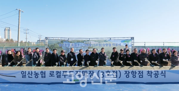 일산농협(조합장 김진의)이 지난달 26일 세 번째 로컬푸드 직매장(장항점) 부지에서 착공식을 갖고 새로운 비전을 내놨다. 2014년 로컬푸드 직매장 풍산점(1호점)과 2015년 일산점(2호점)을 개장한 이래 4년간 방문 고객 수 200만명, 총매출 350억원을 기록하며 전국 최고의 직매장을 운영 중인 일산농협은 올해 3호점 개장으로 총매출 1000억원에 도전한다는 계획이다.