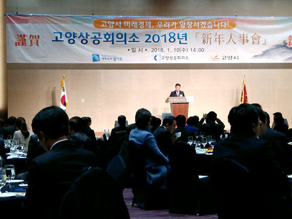 [고양신문] 2018 무술년 새해를 맞아 고양상공회의소(회장 장동욱)는 10일 엠블호텔 2층 홀에서 신년인사회를 개최했다.