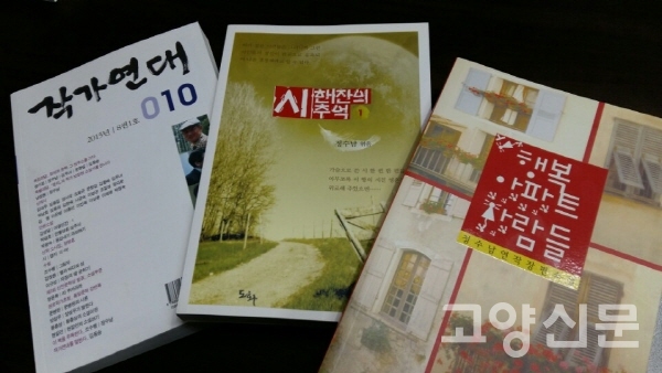 2006년 창립해 10년 동안 회장으로 있다가 지난해 내려놓았다. 한국작가회의 고양지부 승인을 받았고, 현재 50여 명 작가가 활동하고 있다. 고양작가회의에서 발행하는 문예지 ‘작가연대’는 지금까지 12호가 나왔다. 회원들에게 작품 발표 지면도 제공하고, 외부의 좋은 작품도 싣는 전국을 표방하는 문예지다. 작가회의 외에도 고양포럼, 고양평화종교인회의, 100만자치연대회의 등 지역 운동에 힘닿는 대로 참여했다. 시민 스스로 우리의 권리를 제대로 찾아야겠다는 생각에서다.